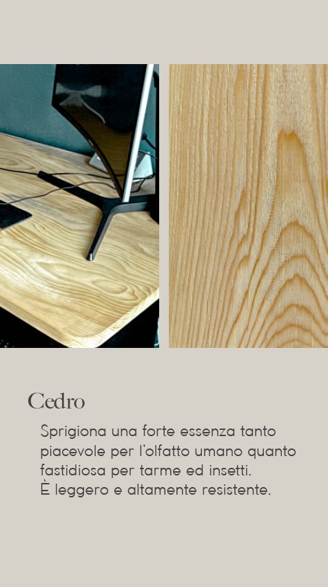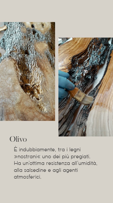 Ulivo secolare, Noce, Tasso, Cedro Rovere, Ciliegio, Frassino, Eucalipto, Radica di pioppo, Acero,